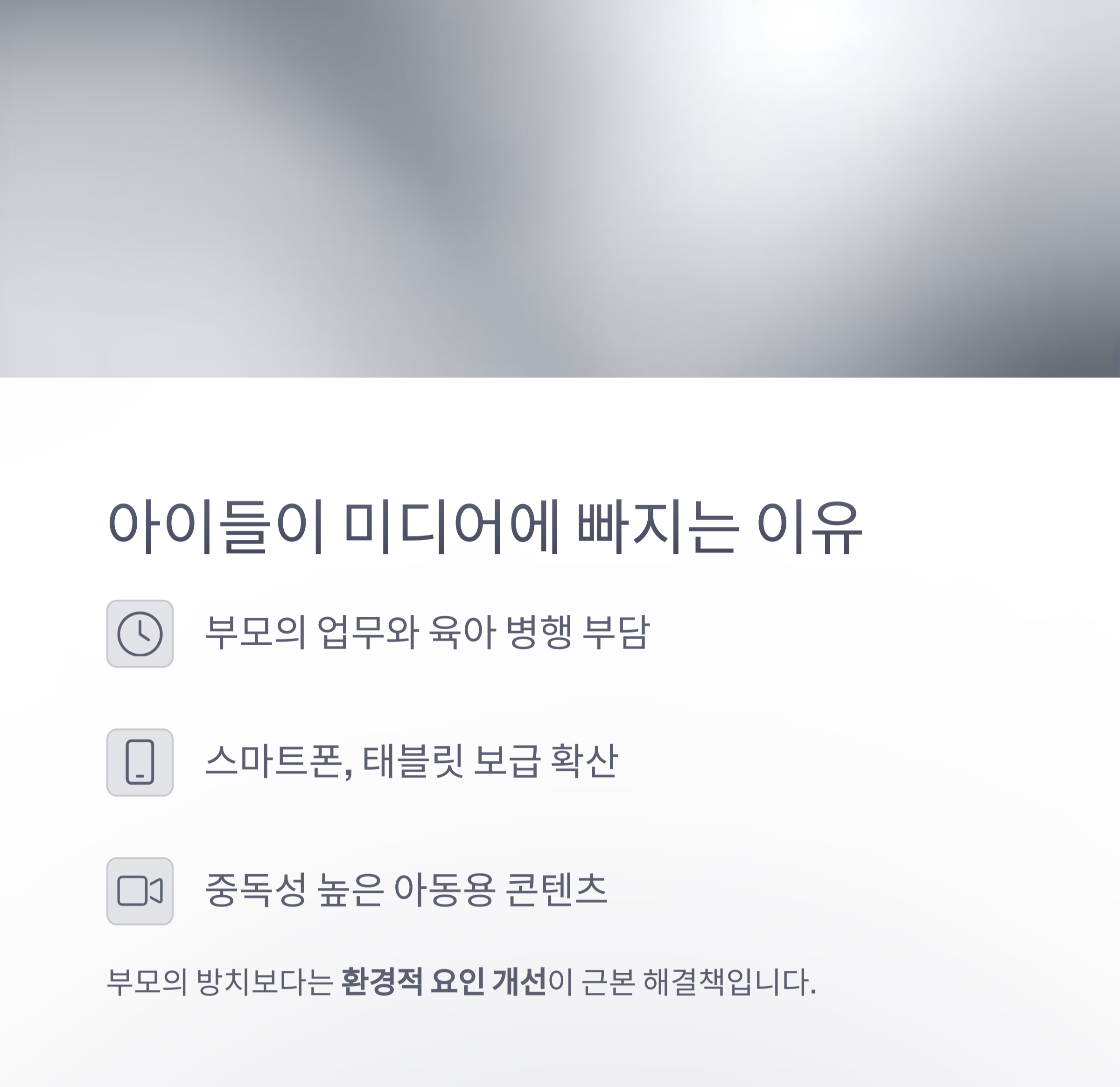 - 부모부터 스마트폰 사용을 줄이세요